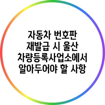 울산 차량등록사업소는 자동차 번호판을 재발급 받을 수 있는 공식 기관이에요. 여기서 필요한 절차를 알아보아요.