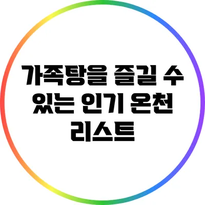 온천은 자연 속에서 편안하게 휴식을 취할 수 있는 최고의 장소입니다. 특히 가족과 함께 방문할 수 있는 온천은 아이들과 함께 소중한 추억을 만들 수 있는 곳이에요. 가족탕을 즐길 수 있는 인기 온천을 알아보면, 많은 힐링과 즐거움을 경험할 수 있습니다.