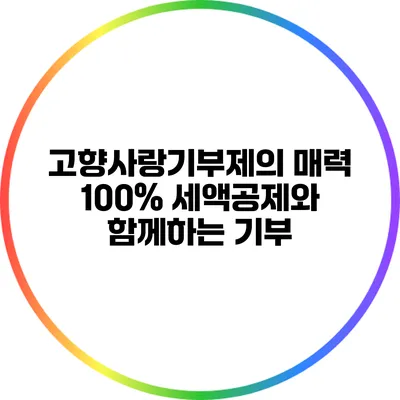 고향사랑기부제는 개인이나 기업이 자신의 고향에 기부를 할 수 있도록 장려하는 제도입니다. 이 제도를 통해 기부자는 고향의 발전을 지원하는 동시에 세액공제를 받을 수 있는 이점을 누릴 수 있죠.