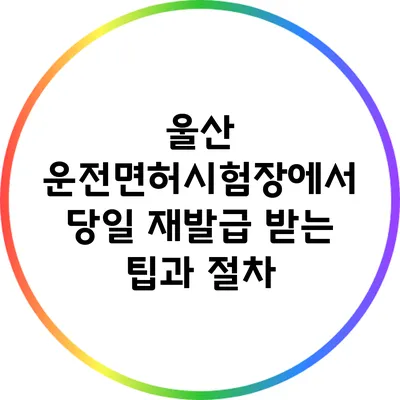 울산 운전면허시험장에서 당일에 재발급 받기 위한 절차는 다음과 같습니다.