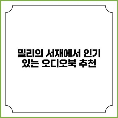 밀리의 서재에서 인기 있는 오디오북 몇 가지를 추천해드릴게요. 이들 작품은 사용자들 사이에서 높은 평가를 받고 있으며, 다양한 분야를 아우릅니다.