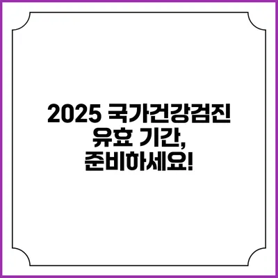 2025년에 실시될 국가건강검진의 유효 기간은 어떤 식으로 설정될까요? 일반적으로, 모든 검진 결과는 2년간 유효해요. 하지만 각 검진 항목에 따라 다소 차이가 있을 수 있어요.