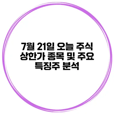 7월 21일 주식 시장: 상한가 종목 및 주요 특징주 분석