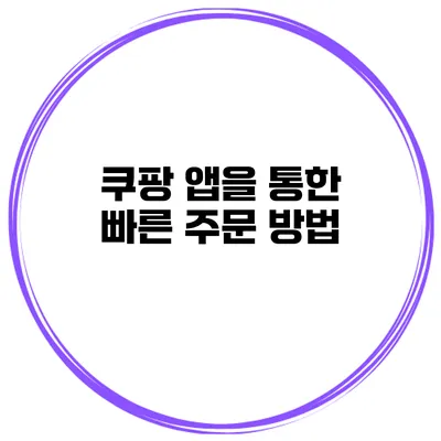 쿠팡 앱을 통한 빠른 주문 방법 완벽 가이드