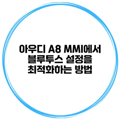 아우디 A8 MMI에서 블루투스 설정을 최적화하는 것은 차량의 사용 편의성을 크게 향상시킬 수 있습니다. 블루투스 연결을 통해 스마트폰과 다양한 기능을 원활하게 사용할 수 있어 운전 중 더욱 안전하게 소통할 수 있습니다. 이 포스트에서 소개한 방법들을 활용하여 최적의 사용자 경험을 만끽해 보세요. 블루투스 설정을 매끄럽게 해두면, 차량에서의 모든 시간이 더 즐거워질 것입니다.