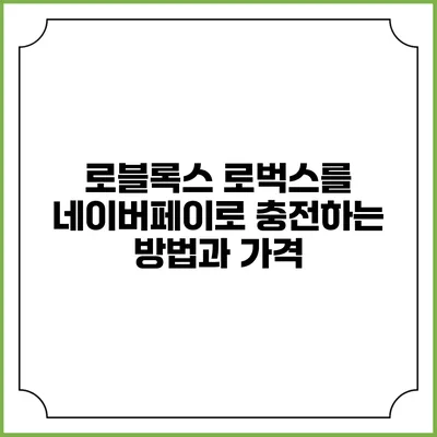 로벅스를 네이버페이를 통해 충전하는 과정은 간단해요. 다음 단계를 따라 해보세요.