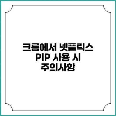 넷플릭스 PIP 기능을 활용하면 멀티태스킹이 쉬워져요. 하지만 크롬에서 사용할 때는 몇 가지 주의할 점이 있어요. 따라서, 이 글에서 언급한 주의사항과 팁을 충분히 숙지한 후 PIP 기능을 사용하시면 더욱 유용할 것입니다. 영화와 드라마를 보면서 다른 작업도 가능하게 만드는 이 멋진 기능을 활용해보세요!